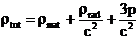Così dividendo sia la densità di energia che la pressione per c , si ottengono i contributi di ciascuna di esse alla densità di materia (si osservi che densità di energia e pressione sono grandezze omogenee erg/cm = dyn/cm