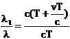 T = T + vT/c