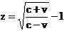 Nella relatività speciale z è legato alla velocità di allontanamento v dalle seguenti relazioni