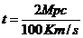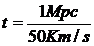 Se infatti la galassia C che si trova ad 1 Mpc da B si sta allontanando da quest'ultima alla velocità di 50 Km/s, ricordando che v = s/t, potremmo affermare che al tempo
