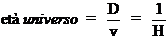 Ricordando ora che la legge di Hubble è v = HD, è semplice verificare che il rapporto tra D e v risulta pari al reciproco della costante di Hubble e tale valore è una stima dell'età dell'universo
