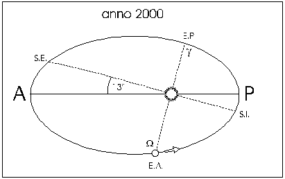 l'orbita terrestre è un ellisse e le posizioni assunte dagli altri pianeti rispetto ad essa tendono a modificarne l'orientamento. Come conseguenza delle perturbazioni gravitazionali planetarie essa ruota in senso antiorario, facendo perno sul sole, in circa 111.500 anni.