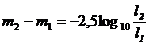 e quindi k = - 2,5. La relazione fondamentale della fotometria stellare diventa quindi (con I1 > I2)