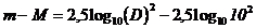 La relazione che lega magnitudine apparente m, magnitudine assoluta M e distanza D (in parsec) è