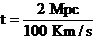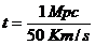 Se infatti la galassia C che si trova ad 1 Mpc da B si sta allontanando da quest'ultima alla velocità di 50 Km/s, ricordando che v = s/t, potremmo affermare che al tempo