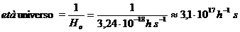 Come si può vedere l'età dell'universo è compresa tra 10 (h = 1) e 20 (h = 0,5) miliardi di anni. Piccole variazioni di Ho possono dunque modificare in modo sensibile le nostre stime sull'età dell'universo.