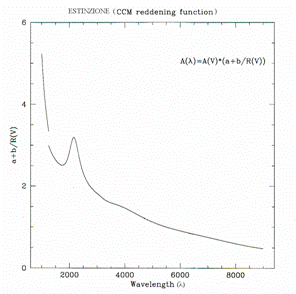 Per la correzione dei flussi sperimentali nelle righe di emissione ci siamo avvalsi della legge empirica di Cardelli, Clayton e Mathis [CCM 1989], sotto riportata: