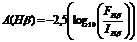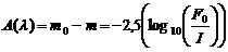 Sapendo che l'assorbimento di una lunghezza d'onda coincide con la differenza tra le magnitudini (osservata ed effettiva) nella lunghezza d'onda data, dalla legge di Pogson si ricava: