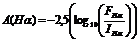 Di conseguenza F è il flusso sperimentale, mentre I è il flusso intrinseco: nel nostro caso F0 è stata sostituita con i flussi sperimentali FHa e FHβ: