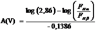 Il valore dell'assorbimento nel visibile si ottiene eguagliando la seconda equazione a 2,86, sfruttando le proprietà dei logaritmi: