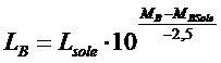 Confrontando MB con la magnitudine assoluta del Sole MB = +5,48 e la sua luminosità L = 3,9E33 erg/s abbiamo calcolato la luminosità in B di ogni nucleo delle galassie, usando la formula: