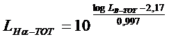Basandoci sull'ipotesi che la relazione trovata precedentemente può essere utilizzata anche per le galassie intere e il gas ionizzato è distribuito omogeneamente in ciascuna galassia, abbiamo calcolato la luminosità LHα-TOT con l'equazione: