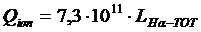 Ottenuta quindi l'energia emessa nella frequenza dell'Hα per ogni galassia, abbiamo trovato il corrispettivo numero di fotoni ionizzati che originano tale emissione di energia:
