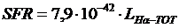 ed il tasso di formazione stellare espresso in masse solari formate ogni anno, sulla base della formula di R. Kennicutt (1998):