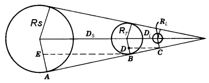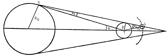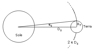 Se infatti DS è la distanza Terra-Sole, la circonferenza avente raggio DS ha una lunghezza 2πDS ed il raggio terrestre RT rappresenta una frazione di tale circonferenza pari a πS/360
