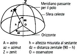 angolare sulla sfera celeste tra l'astro e lo zenit o sulla superficie