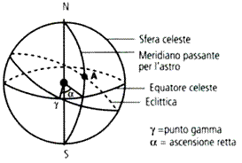 retta (α), misura angolare dell'arco di equatore celeste compreso tra