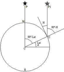 Per la Polare si consideri che il punto sub-astrale è, con una buona approssimazione, coincidente con il polo Nord, inoltre si può considerare che i raggi arrivino paralleli sulla superficie terrestre; il cerchio d'altezza (identificato dalla distanza zenitale Dz = 90°-h) di questa stella coincide con un parallelo (identificato da lat = 90°-Dz).