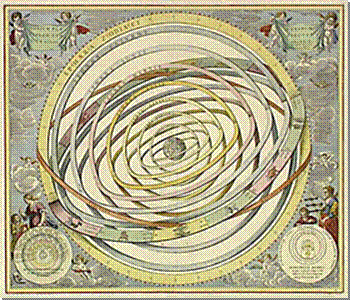 Nel II secolo d.C. lo schema aristotelico fu ripreso da Tolomeo che lo strutturò in una serie di sfere concentriche, fatte di quintessenza: il "quinto elemento", ( il mondo fenomenico, costituente i corpi celesti) e di epicicli, ossia di cerchi minori in movimento lungo le sfere principali.