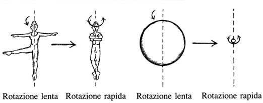 Le stelle di neutroni non solo sono molto più dense di una tipica stella, ma ruotano anche molto più velocemente. Se il nostro Sole ruota su se stesso circa quindici volte l'anno, una tipica stella di neutroni può ruotare centinaia o migliaia di volte al secondo. Le stelle di neutroni ruotano così energicamente, per la stessa ragione per cui un pattinatore ruota più velocemente quando raccoglie le braccia intorno al corpo. Una legge fondamentale della fisica afferma che, in assenza di forze esterne rotazionali, il momento angolare di qualunque corpo, sia una stella che un pattinatore, deve rimanere costante. Il momento angolare è essenzialmente il prodotto tra la distanza di una massa da un asse dato e la velocità con la quale gli ruota intorno. Quindi, quando un pattinatore raccoglie le braccia intorno al corpo - ovvero la distanza della sua massa dal centro diminuisce - la legge di conservazione predice che ruoterà più velocemente. Analogamente, quando una stella collassa e diventa più concentrata, ruota molto più velocemente di prima.