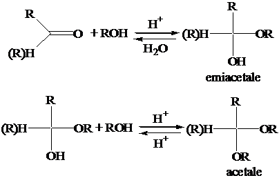 Addizione di alcoli ad aldeidi o chetoni emiacetali e acetali