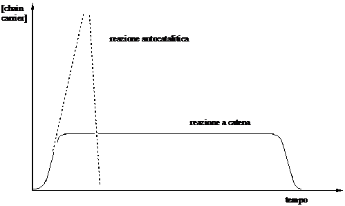 In una reazione a catena autocatalitica la reazione del chain carrier con il substrato conduce alla formazione dei prodotti di reazione e di due molecole di chain carrier, la cui concentrazione non rimane costante, ma cresce progressivamente nel tempo fino alla fine della reazione. Il progressivo aumento della concentrazione del chain carrier determina un progressivo aumento della velocità di reazione.