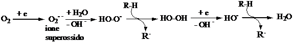 idrossi radicali. Questo processo opera principalmente in vivo con substrati biologici. Gli idrossi radicali sono prodotti