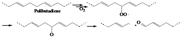 La b-scissione conduce a rottura della molecola, con formazione di un nuovo radicale propagatore e di un derivato carbonilico (aldeide o chetone). Questo processo è responsabile della degradazione di catene alifatiche, con perdita delle caratteristiche del materiale.
