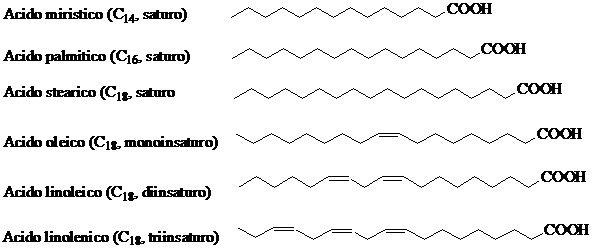 Gli acidi grassi più diffusi sono: