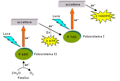 I due fotosistemi lavorano in modo integrato, generando un flusso di elettroni, alimentato dall'energia luminosa, che li percorre partendo dall'acqua fino a raggiungere il NADPH.