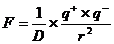 La forza di attrazione (F) tra due cariche di segno opposto q+ e q- poste tra loro alla distanza r è data da: