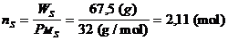Il numero di moli contenute in 67,5 g di Zolfo è