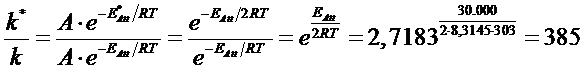 la reazione catalizzata risulta dunque 385 volte più veloce della reazione non catalizzata