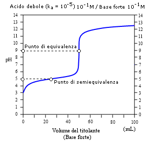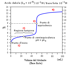 Tracciamo ora la curva di titolazione acido-debole/base-forte