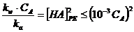 Infine, dalla condizione 1) per cui [HA]PE ≤ 10-3 CA, potremo scrivere
