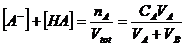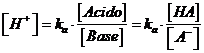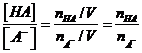 Il rapporto [HA]/[A-] si riduce infatti ad un rapporto tra numero di moli essendo il volume il medesimo sia per l'acido indissociato che per il suo anione (base coniugata)
