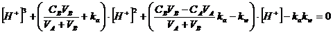 Un'equazione di terzo grado che ci permette di tracciare la curva di titolazione acido-debole/base-forte per punti, determinando la concentrazione degli ioni H+ (e quindi il pH) della soluzione per diversi valori di VB (il volume della base titolante via via aggiunto).