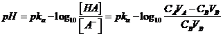 Dunque il calcolo del pH nella regione tampone si esegue utilizzando la seguente relazione