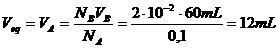 Il volume equivalente si calcola a partire dalla condizione di equivalenza, per la quale in soluzione sono presenti un numero di equivalenti dell'acido (nA) uguale al numero di equivalenti della base (nB)