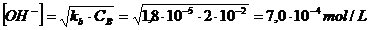 pOH =½ (pkb -log CB) = =½ (10,7 - log 6,7 10-2) = 5,9