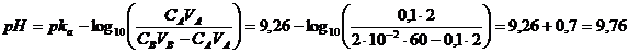 pH =½ (pka -log CA) = =½ (3,3 - log 0,2) = 2