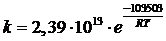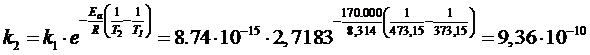 Per la reazione in fase gassosa H2 + I2 → 2 HI a 373.15 K, la costante cinetica vale k = 8.74 × 10−15 L∙mol−1 s−1. Calcoliamo il valore della costante cinetica a 473.15 K sapendo che l'energia di attivazione della reazione è Eatt = 1,7 105 J mol-1