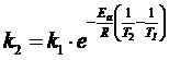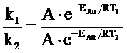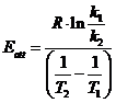 La relazione di Arrhenius può essere utilizzata per calcolare l'energia di attivazione anche effettuando solo due misure della costante di velocità specifica di una reazione a due temperature diverse T1 e T2 Dividendo membro a membro, si ottiene