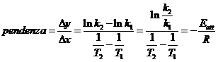 Si noti come, utilizzando la relazione di Arrhenius in forma