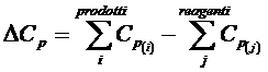 Calcoliamo la differenza tra le capacità termiche dei prodotti e dei reagenti