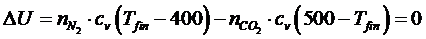 Essendo il sistema adiabatico, alla fine della trasformazione non avrà scambiato con l'ambiente ne' lavoro ne' calore e dunque la sua energia interna sarà rimasta inalterata ΔU = 0. In altre parole la quantità di calore ceduta dalla CO2 è esattamente uguale alla quantità di calore acquistata dall'azoto.