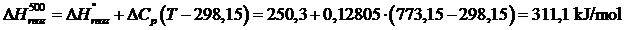 Calcoliamo ora l'entalpia di reazione a 500°C