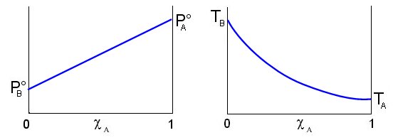 Come si può osservare nei grafici successivi, a differenza della tensione di vapore, la temperatura di ebollizione della soluzione non varia linearmente in funzione di cA