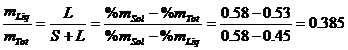 a 1300 °C il sistema bifasico è dunque costituito dal 38,5% in massa di fuso (più concentrato in rame) e dal 61.5% in massa di solido (più ricco di Nichel) |