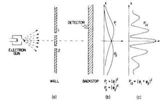 Però la probabilità relativa che un elettrone arrivi alla placca di fondo a varie distanze x dal centro, risultava la stessa dell'esperimento con la luce, la frequenza perciò era quella tipica dell'interferenza.